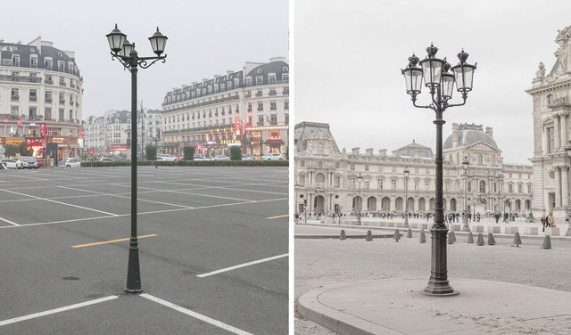 Fransız fotoğrafçı François Prost, Işıklar Şehri’nin birebir taklidi olan Çin’deki Tianducheng bölgesini fotoğraflayarak, iki kentin karşılaştırmasını yaptı.