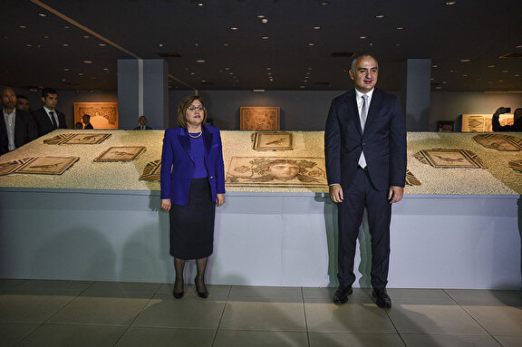 Öte yandan, Zeugma Antik Kenti Kazı Başkanı Prof. Dr. Kutalmış Görkay da getirilen parçalar ve mozaiğin bütünü hakkında Bakan Ersoy'a bilgi verdi.