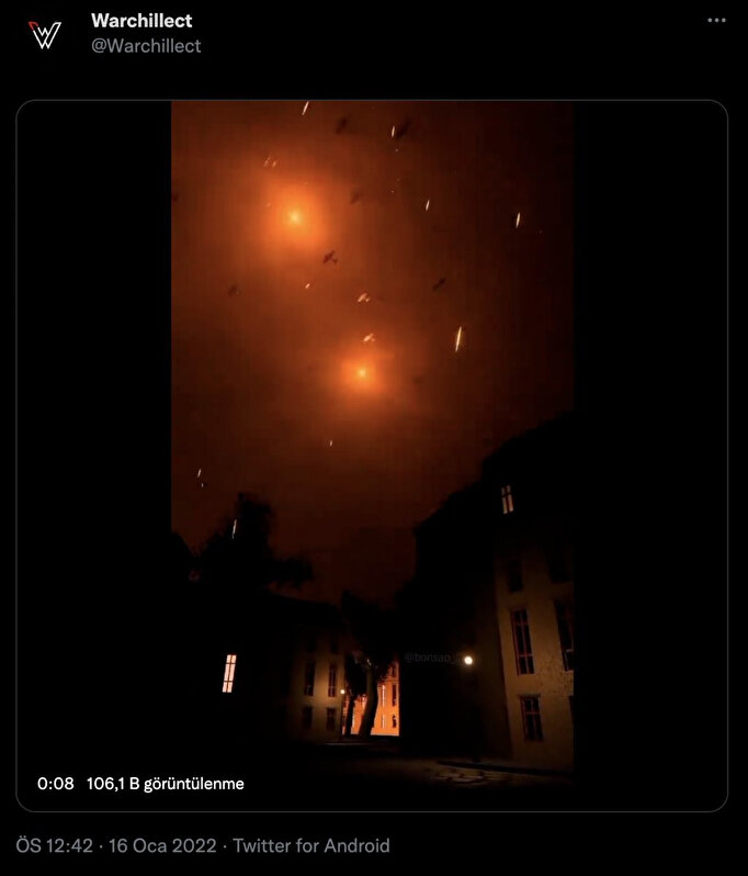 "Geceye dair sıcak bir görüntü" diye servis edilen görüntülerin, bir Twitter kullanıcısı tarafından 16 Ocak'ta paylaşılan oyun videosu olduğu ortaya çıktı.