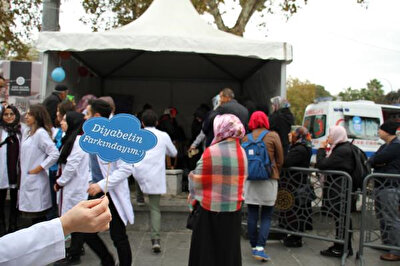 Eyüpsultan Belediyesi, Eyüpsultan İlçe Sağlık Müdürlüğü ve Marmara Üniversitesi Beslenme ve Diyatetik Kulübü öğrencileri işbirliğiyle 14 Kasım Dünya Diyabet Günü kapsamında düzenlenen etkinlik Eyüpsultan Meydanı’nda gerçekleşti. Vatandaşlara ücretsiz olarak açlık kan şekeri ve vücut analiz ölçümleri yapan doktorlar ve sağlık görevlileri diyabet hastalığı hakkında da katılımcıları bilgilendirdi. Vatandaşlar etkinliğe yoğun ilgi gösterdi.