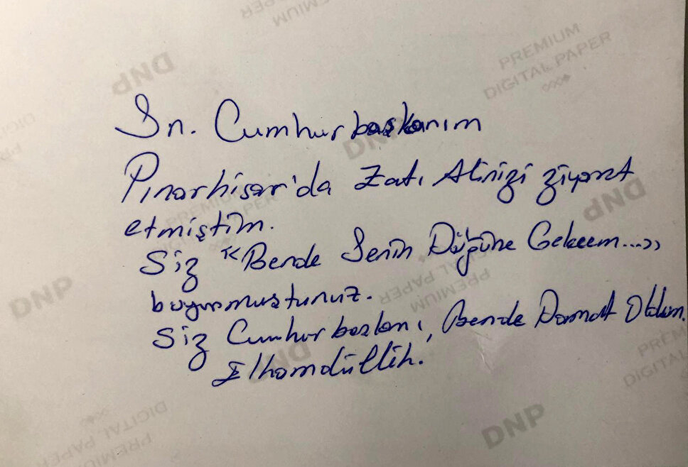 Sayın Cumhurbaşkanım, Pınarhisar'da zatıalinizi ziyaret etmiştim. Siz 'Ben de senin düğününe geleceğim.' buyurmuştunuz. Siz Cumhurbaşkanı, ben de damat oldum. Elhamdülillah.