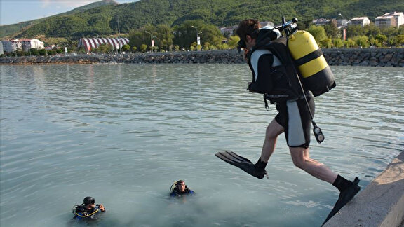 Bitlis'in Tatvan ilçesinde bir araya gelen Van Sualtı Arama Kurtarma Derneği (Van Akut) ile Bitlis Doğal Afetler Arama Kurtarma ve İlk Yardım Derneği (Bitlis Akut) dalgıçları, Tatvan sahilinde Van Gölü'ne daldı.