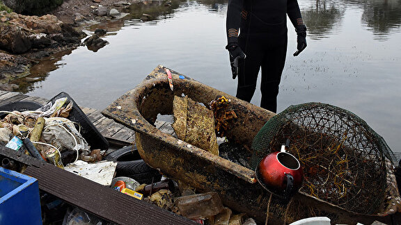 - Çalışmalarda, denizden cam şişe, teneke kutu, otomobil lastikleri, cep telefonu, televizyon, küvet, klozet, mangal, çöp konteyneri ve alışveriş araçlarının çıkması şaşırttı.