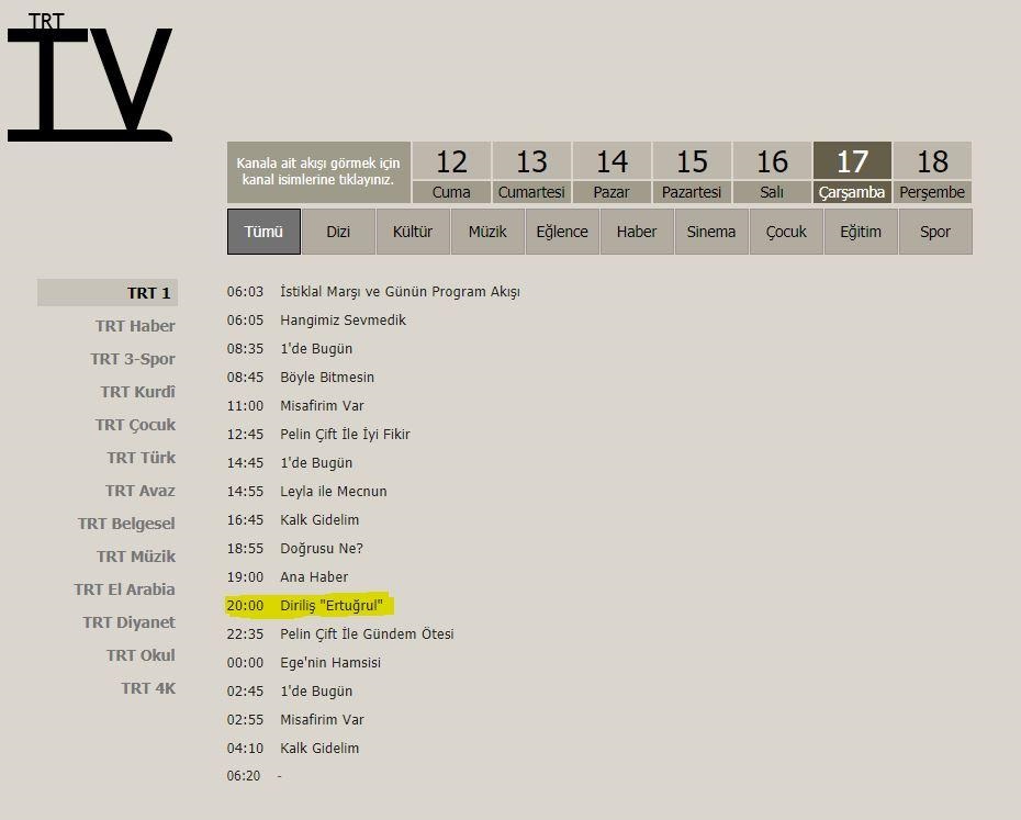 TRT1 Kanal Koordinatörü Kurtuluş Zeydan, dizinin başlangıç tarihi olarak ekim ayının ortalarını işaret etmişti. TRT yayın akışında ise Diriliş Ertuğrul dizisinin 17 Ekim Çarşamba günü ekranlara geleceği öğrenildi.