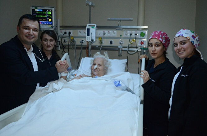 Kalbi dört defa duran yaşlı kadın, doktor ve hemşirelerin yaptığı kalp masajıyla her seferinde hayata dönmeyi başardı. Gözleriyle, gülümsemesiyle sağlık çalışanlarıyla anlaşan 82 yaşındaki Türesin, 140 günün sonunda yoğun bakımdan çıkartılıp servise alındı. Servise çıkmadan önce Dr. Hayretdağ ve yoğun bakım servis hemşireleriyle hatıra fotoğrafı çektiren Türesin, kendisini hayata döndüren doktor ve hemşirelere öpücük atarak teşekkür etti.