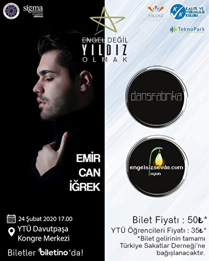24 Şubat 2020 Pazartesi, saat 17.00'de Davutpaşa Kampüsü Kongre ve Kültür Merkezi'nde düzenlenecek yardım gecesinde; Emir Can İğrek konseri, Dansfabrika dans ve engelsizsevda.com tiyatro gösterisi de izleyicilerle buluşacak.