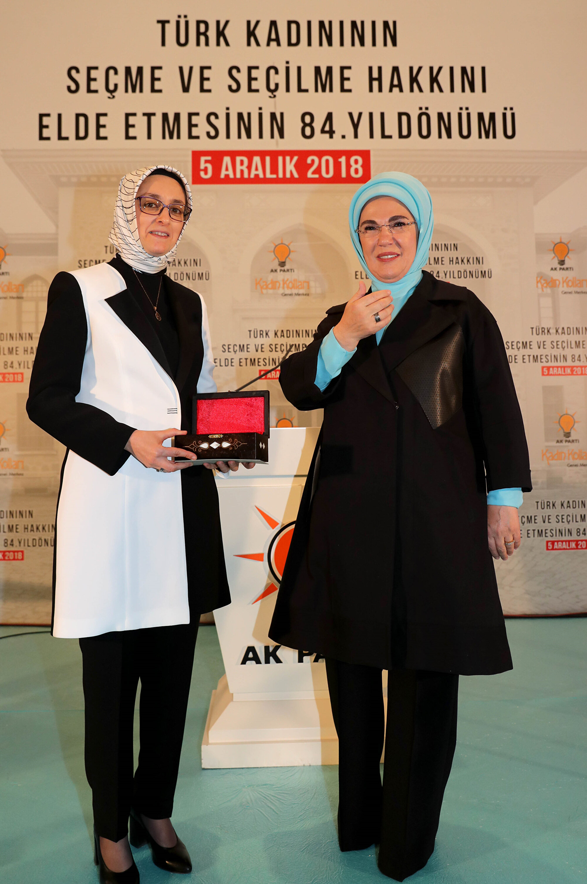 Türkiye Cumhurbaşkanı Recep Tayyip Erdoğan'ın eşi Emine Erdoğan, Türk Kadınının Seçme ve Seçilme Hakkını Elde Etmesinin 84. Yıl Dönümü" dolayısıyla AK Parti Genel Merkez Kadın Kollarınca düzenlenen programa katıldı.