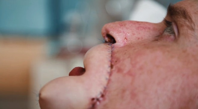Alex Lewis, 2013 yılında et yiyen bakteri yüzünden kollarını, bacaklarını ve dudaklarını kaybetti. Kesilen uzuvların yerine protezler takıldı, çok zorlu bir süreçten geçti. Görüntüsünün daha normal görünmesi için omuz derisinden dudak yapıldı, kalıcı makyajla dudak belirgenleştirildi. Lewis, bu dudaklarla hayatının değiştiğini söyledi.