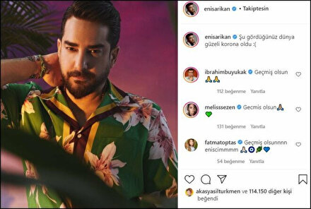 Ezgi Mola’nın ardından en yakın arkadaşı oyuncu Enis Arıkan’dan da kötü haber geldi. Enis Arıkan, sosyal medya hesabından bir fotoğrafını paylaşarak “Şu gördüğünüz dünya güzeli koronavirüs oldu” notunu düştü. Arkadaşları ve sevenlerinden geçmiş olsun mesajı yağdı.