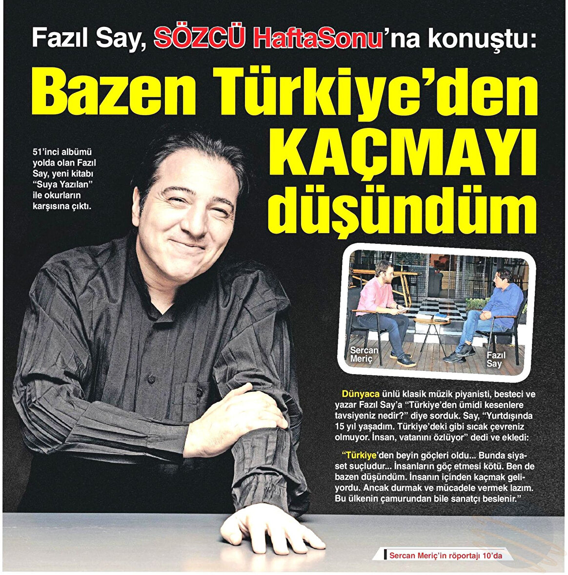 Yalan ve provokatif haberleriyle sık sık gündeme gelen Sözcü Gazetesi'nin son kurbanı piyanist ve besteci Fazıl Say, oldu. Yeni kitabıyla ilgili röportaj verdiği gazetenin 'çarpıcı manşet tutkusu' nedeniyle kendisini hedef tahtasına koyduğunu belirten Say, "Ben de bir dönem Türkiye’den kaçmayı düşündüm ama sonra doğru bildiklerimin mücadelesini vermek için kaldım” cümlesinin "Türkiye'den kaçmayı düşündüm" şeklinde manşete taşındığını aktararak "Bu manşeti okuyan biri bana küfürü basar" ifadelerini kullandı. Sözcü'nin daha önceki röportajlarında da benzer şekilde manşetler attığını söyleyen piyanist, "Bir insanı toplum önünde yıpratmaktır. Özür mözür de dilemeyin" diye isyan etti.
