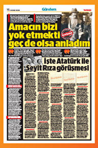 Fetullah Gülen’in Mason biraderi olduğunu, kamuoyuna duyurarak gündemi sarsan Yeni Şafak, on binlerce kişinin öldürüldüğü Dersim Harekatı’na ilişkin ‘çok bilinen sır görüşme’nin perde arkasını da yayınladığı belgelerle açıkladı. Yeni Şafak, 20 Nisan 2015 tarihinde Atatürk ile Seyit Rıza arasındaki görüşmenin resmi tutanağını yayınlayarak Dersim isyanıyla ilgili bugüne kadar hiç bilinmeyen bir sırrı da ortaya çıkardı. MAH’a (MİT) sunulan bir istihbarat raporu, Atatürk’ün idamdan hemen önce Seyit Rıza ile gizlice bir araya geldiğini belgeliyor. Seyit Rıza görüşmede, “Af dilersen idam edilmeyeceksin” diyen Atatürk’e, “Af dileyecek bir şey yapmadım” karşılığını veriyor.