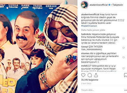 Film afişi önünde girdiği kılıkla poz verip sosyal medya hesabından paylaşan Ata Demirer, “Arap turist hanım kılığında filmimi izledim gayet de gülüyonuz, çok da tatlı gözüküyonuz. Tebdil-i kıyafette ferahlık vardır” notunu yazdı.
