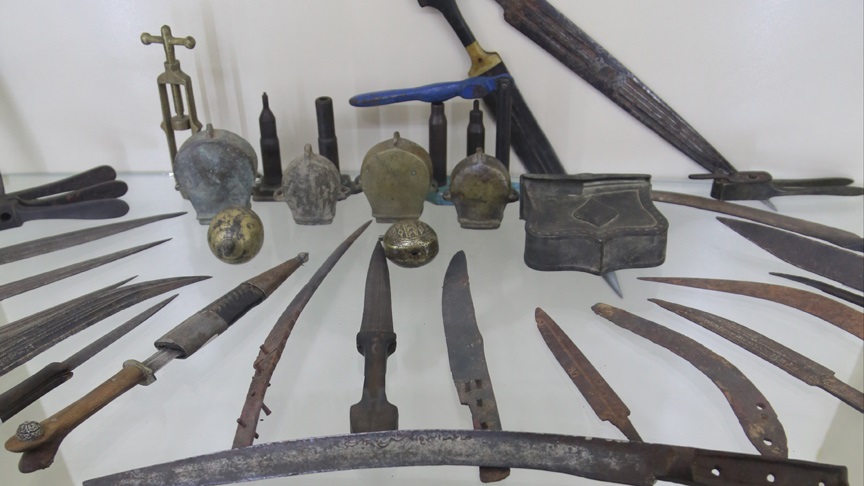 Bakır eserlerin ağırlıklı olduğu müzede, silah, makas, mühür, nakış, el yazması kitap koleksiyonları da bulunuyor.
