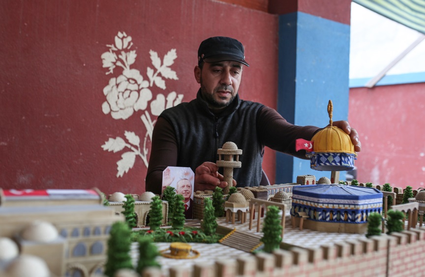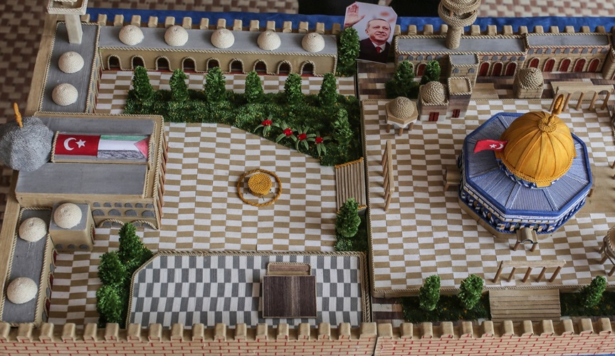 Gazzeli Hüsam Ferhat (45), eşiyle birlikte hazırladığı Mescid-i Aksa maketini Kudüs konusunda kararlı ve onurlu bir duruş sergileyen Cumhurbaşkanı Recep Tayyip Erdoğan'a hediye etmek istiyor.