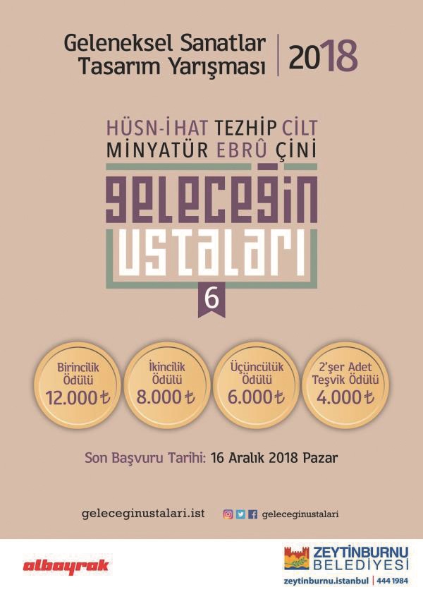 Albayrak Holding’in ana sponsorluğunda bu yıl 6.’sı düzenlenen Geleceğin Ustaları Yarışması’nda başvurular başladı. hüsn-i hat, ebru, cilt, tezhip, minyatür, çini alanlarında yapılan yarışmaya katılmak için son tarih 16 Aralık 2018. Geleceğin Ustaları organizasyonunun koordinatörlüğünü yapan Doç. Dr. Süleyman Berk, yarışmanın genç sanatçıların gelişimi ve yeni sanatçıların ortaya çıkması açısından çok önemli olduğunu vurguladı. Berk, bu sayede de geleneksel sanatların korunarak ileriye taşındığını söyledi.
