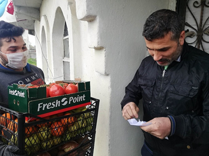 Ailelere 1000’er lira para yardımının yanı sıra meyve, sebze ve erzak dağıtıldı. Evlerinde olmayanların ise kapılarına yardımları bırakıldı.