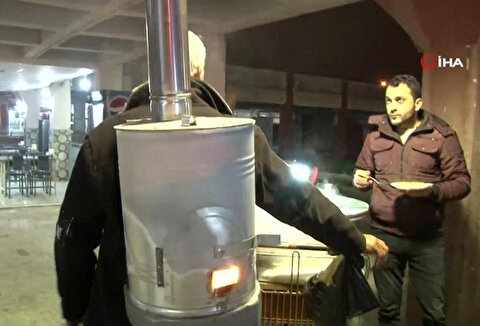 Sırtında bağladığı sobaya odun parçaları ve kağıt atıp yakan, bu şekilde otogarı dolaşan Aslan, vatandaşların ilgisinden memnun olduğunu söyledi.