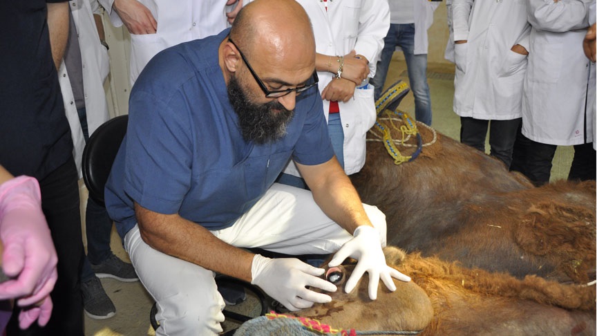 Ayinoğlu, bunun üzerine devesini AKÜ Hayvan Hastanesine getirdi. Katarakt oluşmadan önce güreşlere katılan deve, Veteriner Fakültesi Cerrahi Ana Bilim Dalı Öğretim Üyesi Doç. Dr. Kamuran Pamuk tarafından muayene edildi.