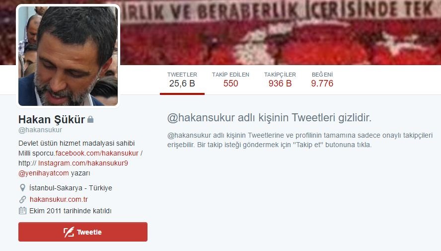 Şükür'ün daha sonra Twitter hesabını gizlediği görüldü.