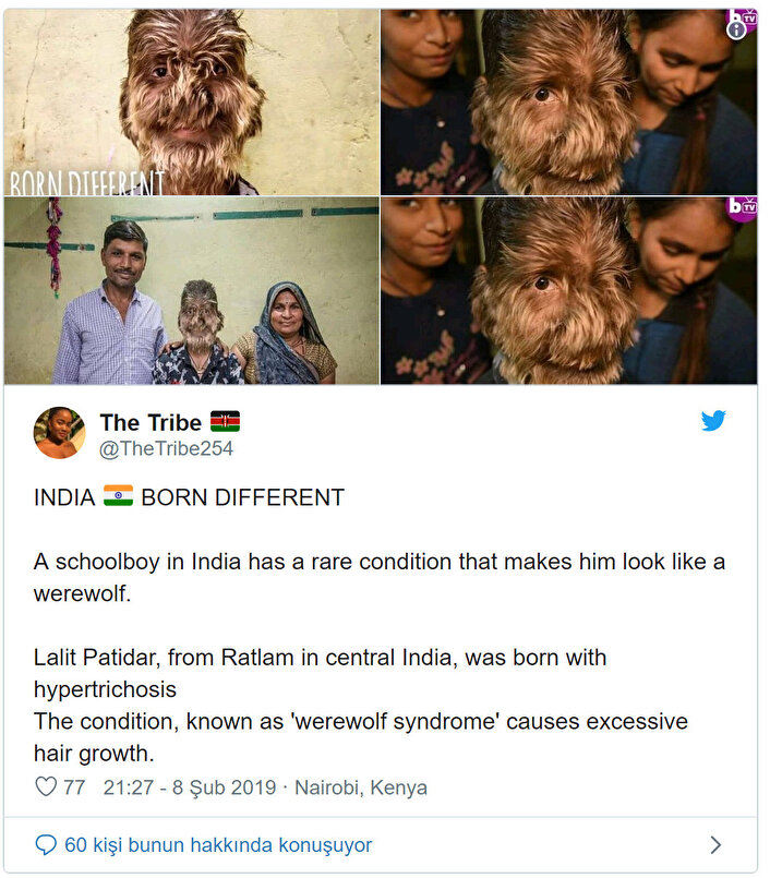 Lalit, Madhya Pradesh eyaletine bağlı Ratlam şehrinde hipertrikoz ya da halk arasında bilinen adıyla 'kurt adam sendromu' hastalığıyla doğdu. Okulda oldukça popüler olan on üç yaşındaki Lalit, bazen sokakta saldırılara da maruz kalabiliyor. Buna rağmen, dış görünüşüne alışmış durumda ve kendini rahat hissediyor.