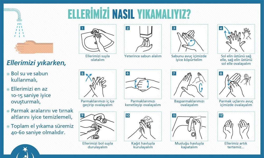 İşte 12 basamakta doğru el yıkama yöntemi:
