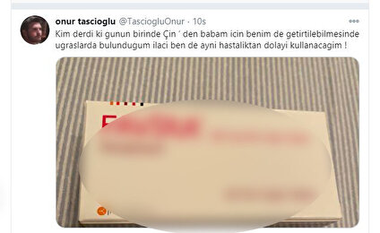 Koronavirüs nedeniyle hayatını kaybeden ilk sağlık çalışanı Prof. Dr. Cemil Taşçıoğlu'nun oğlu Onur Taşçıoğlu da koronavirüse yakalandı. Babasının iyileşmesi için yoğun uğraşlar sonucu Çin'den getirdikleri ilacı kendisi de kullanmaya başlayan Taşçıoğlu, ''Kim derdi ki günün birinde Çin'den babam için benim de getirtilebilmesinde uğraşlarda bulunduğum ilacı ben de aynı hastalıktan dolayı kullanacağım" ifadelerini kullandı.