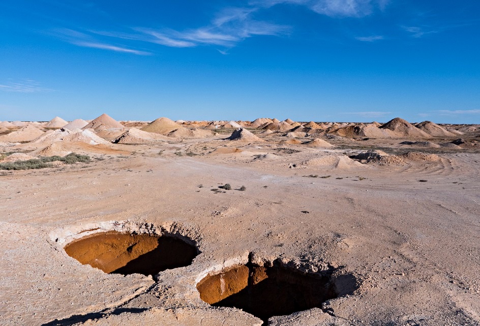 Dünyanın opal madeni başkenti olarak sayılan Coober Pedy’de maden çıkartmak için açılan binlerce kuyu var.
