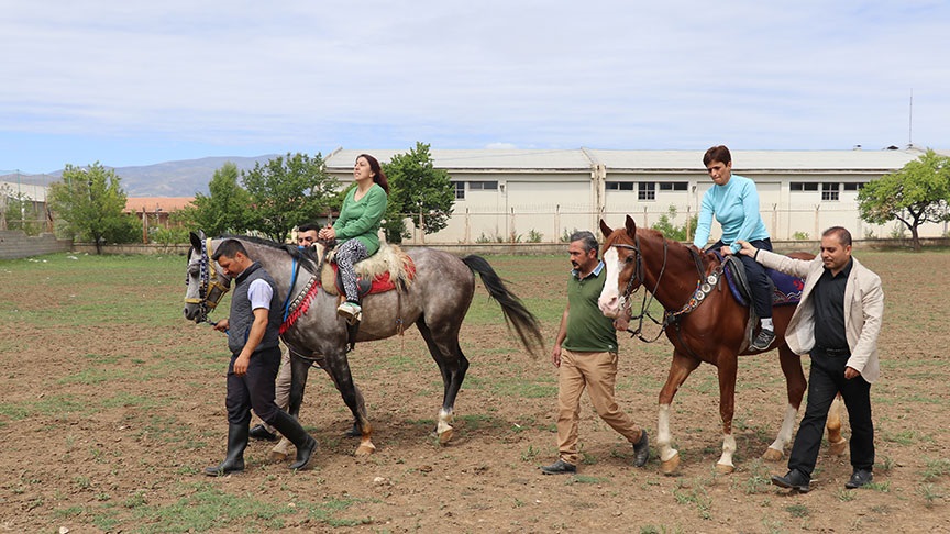 Erzincan'da, down sendromlu, otizmli, fiziksel veya zihinsel engelli çocuklar, at eşliğinde tedavi olarak bilinen "hipoterapi" yöntemiyle hem sağlığına kavuşuyor hem de eğlenceli anlar yaşıyor.