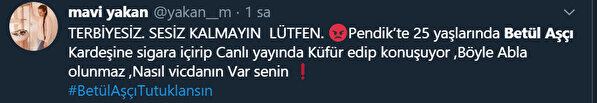 - Sosyal medya kullanıcıları kardeşine zorla sigara içirmeye çalışan abla Betül Aşçı'nın hakkında işlem yapılması yönünde paylaşımlarda bulundu.