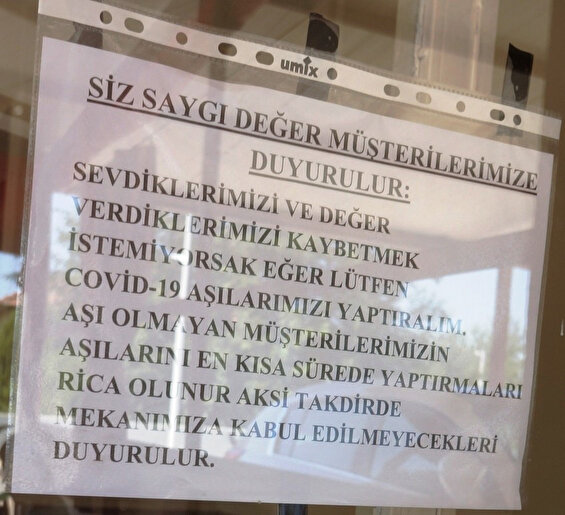 Manisa Sarıgöl'de duyarlı kahvehane işletmecisi Engin Türkol, kendisinin iki kez Covid-19 aşısı olduğunu, işyerine gelen müşterilerini de sürekli aşı olmaları konusunda uyardığını belirterek, "Koronavirüs vakaları çıktığından bu yana kahvehaneler 1,5 yıldan bu yana kapalı kaldı. İnanın işyerime gelen müşterilerimin adını bile unuttum. Yeniden izin verildi çok şükür işyerlerimizi açtık. Ne güzel ama vatandaşlarımızda Covid-19 aşılarını mutlaka olsunlar. Bu nedenle işyerime gelenleri uyarmak için, aşı olmaları, sosyal mesafeyi uymaları, maske takmalarını belirten levhaları işyerimin pencere camlarını astım. Ne olur, mutlaka aşılarınızı olun rahata kavuşalım." dedi.