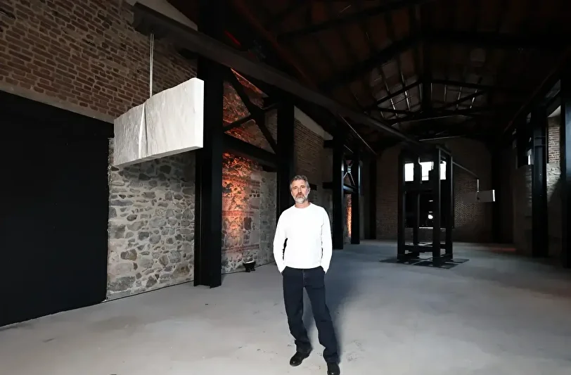 Çelik ve mermerin kontrastıyla oluşan enstalasyon, fizik, gerilim ve kırılganlık üzerinden bir anlam taşıyor. Zamanı, durağan değil; değişen, dönüşen ve bazen de acıtan yönleriyle izleyiciye sunuyor. Mermerlerin ağırlığını taşıyan çelik kolların çıkardığı ses, insanın çığlıklarını anımsatarak varoluşun derin acısını izleyicilere sunuyor. Cİ kapsamında ziyarete açılan eser, 14 Aralık'a kadar ziyaret edilebilecek.