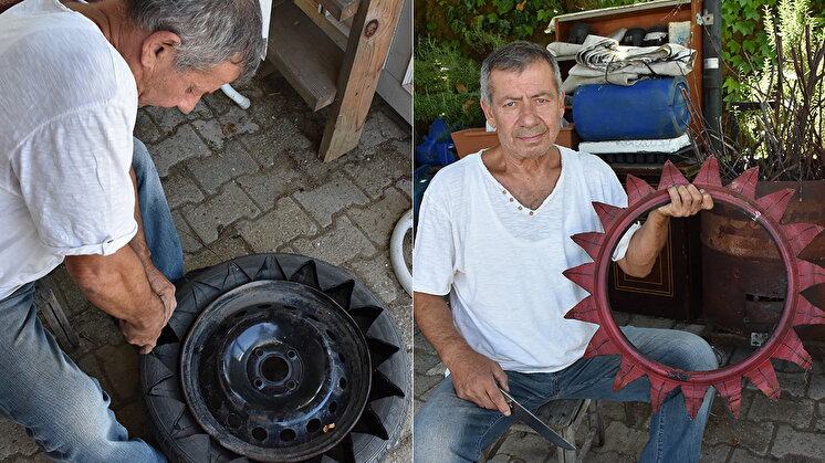 Resul Özşahin, yaptığı açıklamada, emekli olduktan sonra şehir hayatından uzaklaşmak istediğini söyledi. Yerleştiği bölgeyi güzelleştirmek amacıyla arayışa girdiğinde çevre açısından çok yararlı bir fikrin ortaya çıktığını aktaran Özşahin, jant ve lastiklerden saksı, salıncak, masa ve pencere gibi ürünler yaptığını belirtti.