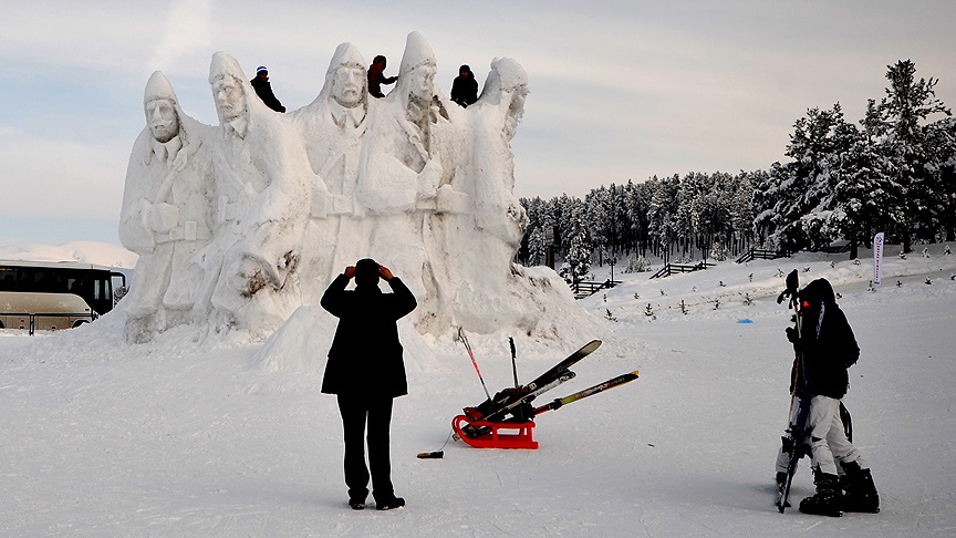 Merkeze gelen kayak tutkunları ve ziyaretçilerden bazıları kardan şehit heykellerinin fotoğrafını çekiyor bazıları da öz çekim yaparak bunları ölümsüzleştiriyor.