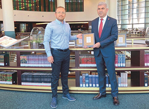 Albayrak Grubu Kurumsal İletişim Müdürü Esat Sivri tarafından Cumhurbaşkanlığı Kütüphaneler Daire Başkanı Ayhan Tuğlu’ya teslim edilen eser üç ciltten oluşuyor. Kitabı rafına yerleştiren Tuğlu, çalışmanın özellikle Selçuklu mimarisi konusunda hazırlanmış önemli bir kaynak olduğuna dikkat çekti. Millet Kütüphanesi’nde 2 milyon üzerinde kitap bulunduğunu söyleyen Tuğlu, Anadolu Selçuklu Sanatının Geometrik Dili kitabının da okuyucularla buluşacağı Nadir Eserler Bölümü hakkında şunları söyledi: “Nadir eserler, özellikle 1930 öncesi olan kitaplar. Bunlar depoda olan ve birçoğu Osmanlıca kitaplardan oluşuyor. Burada oluşan bin kitap özel prestij kitaplar. Bu kitaplar da hem araştırma hem de nadir eserler kütüphanesinde okuyucuların hizmetine sunulacak.” Salgın sürecinde aldıkları önlemlerini de anlatan Tuğlu, vatandaşlara “Gönül rahatlığı ile gelin” çağrısında bulundu.