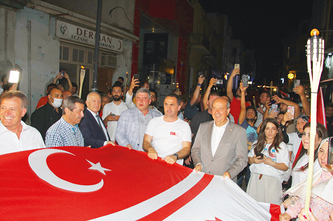 Kuzey Kıbrıs Türk Cumhuriyeti’nde (KKTC) 20 Temmuz Barış ve Özgürlük Bayramı kutlamaları kapsamında “Bayrak Yürüyüşü” düzenlendi. Okçular Vakfı ve Yunus Emre Enstitüsü (YEE) iş birliğiyle başkent Lefkoşa’da gerçekleştirilen yürüyüşe, KKTC Cumhurbaşkanı Ersin Tatar, Cumhuriyet Meclisi Başkanı Zorlu Töre, Türkiye’nin Lefkoşa Büyükelçisi Ali Murat Başçeri, KKTC Dışişleri Bakanı Tahsin Ertuğruloğlu, Bayındırlık ve Ulaştırma Bakanı Erhan Arıklı, Okçular Vakfı Başkanı Haydar Ali Yıldız, YEE Başkan Yardımcısı Kutalmış Yalçın, sporcular ve KKTC’li vatandaşlar katıldı. Cumhurbaşkanı Tatar, yürüyüşün ardından yaptığı konuşmada, yürüyüşe katılanlara teşekkür etti. Cumhurbaşkanı Tatar, yeni siyaset olarak “Kıbrıs’ta egemen eşitliğe dayalı, yan yana yaşayan iki devletli çözüm modelini” savunduklarını, Türkiye’nin de bu siyaseti desteklediğini kaydetti.