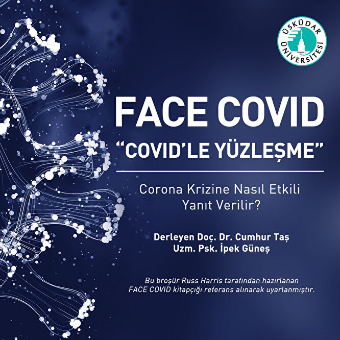 “Face Covid” kabul ve kararlılık terapisi (ACT) prensiplerini kullanarak korona krizine etkili bir şekilde yanıt vermek için bir dizi pratik adımdan oluşan bir çalışma. Üsküdar Üniversitesi öğretim üyesi Doç. Dr. Cumhur Taş ve Uzm. Psk. İpek Güneş’in birlikte derlediği