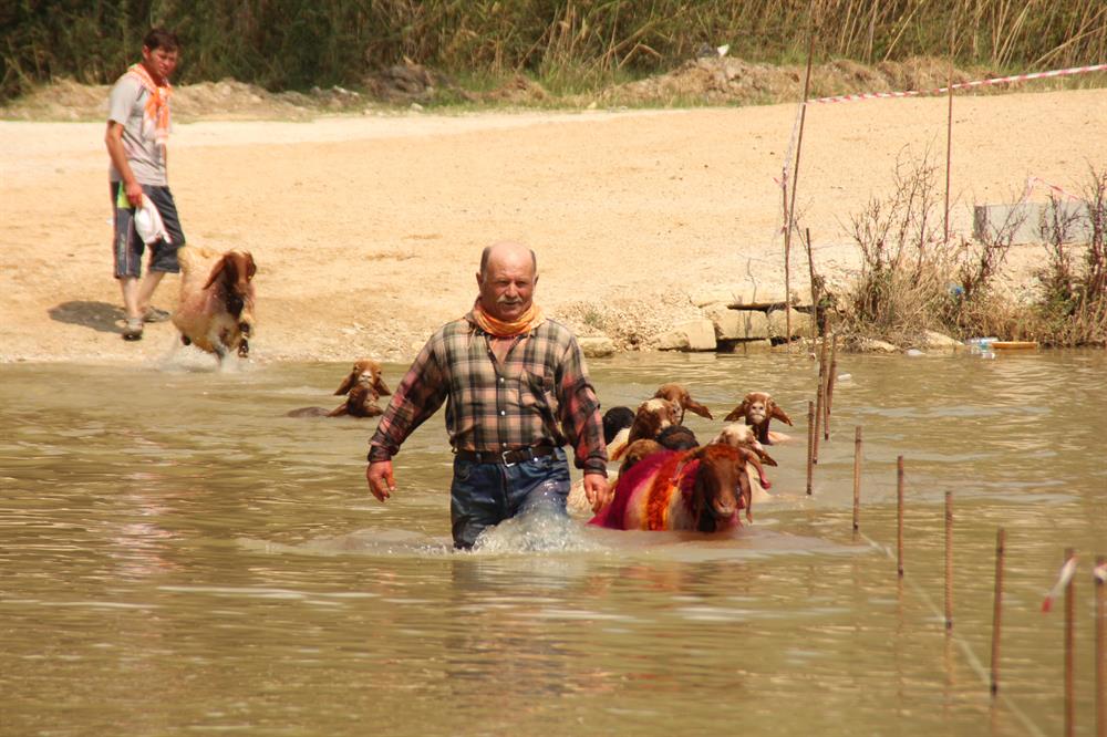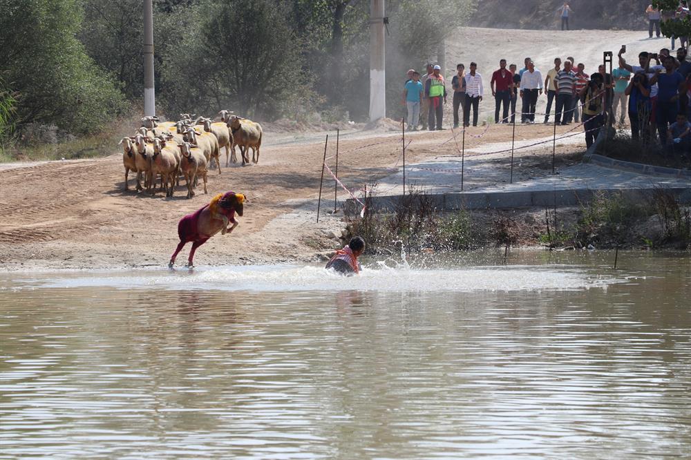 Çobanlar, yarışma alanında sürünün önünden ıslık çalıp suya atlayarak "elci" koyununun da kendisini takip etmesini sağlamaya çalıştı. Koyununun nehre girmesi için seyircilerinde desteğini alan çobanlar karşı kıyıya ulaşmak için ter döktü. Bazı çobanlar, suya atlayarak karşıya geçen koyunlarının boynuna sarılarak öptü.