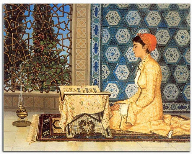 Geçtiğimiz ay Türk ressamlarının öncülerinden Osman Hamdi Bey’in "Kur’an Okuyan Kız" tablosu İngiltere’de yapılan müzayedede 44 milyon 12 bin liradan satılmıştı. Şimdi de yine İngiltere’deki bir müzayedede açık artırmaya çıkarılan Yeşil Cami’de Kuran Dersi tablosu 35 milyon liraya satıldı.