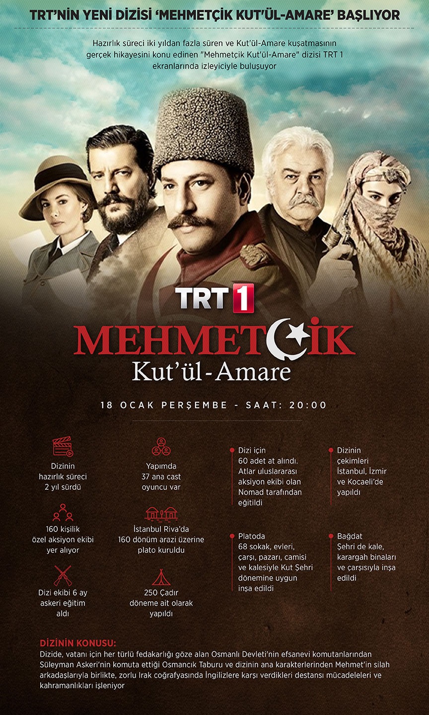 TRT Genel Müdürü İbrahim Eren, Birinci Dünya Savaşı'na hazırlanan Osmanlı devletinde, tek hayalleri devletin yeniden dirilişi ve kurtuluşu olan, gönlünde vatan sevdasından başka bir şey bulunmayan Mehmet ve arkadaşlarını merkez alan "Mehmetçik Kut'ül-Amare" dizisine ilişkin açıklama yaptı.