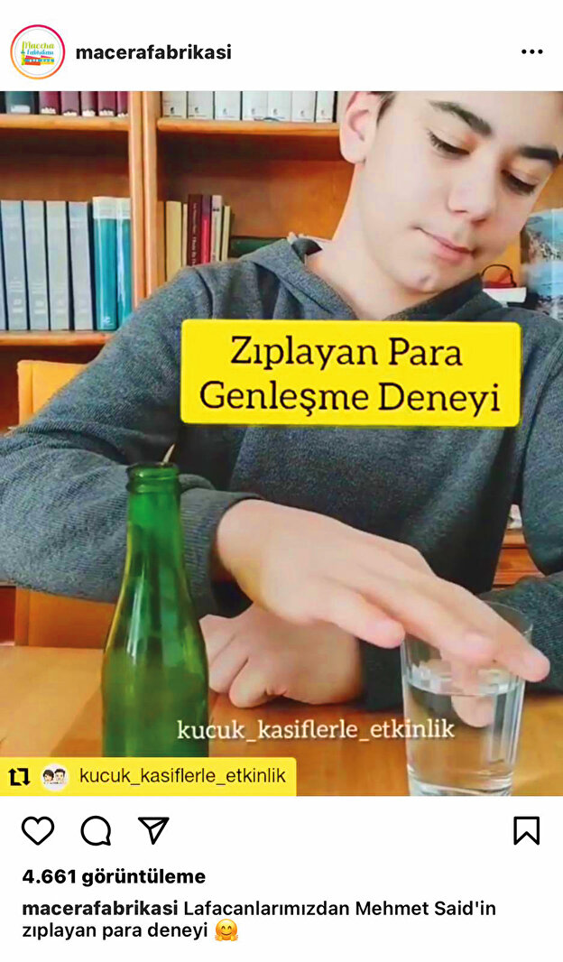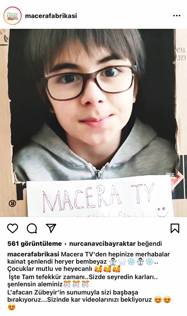 Neler yapıyorlar? @macerafabrikası yaklaşık bir yıldır Instagram üzerinden faaliyet gösteriyor. Bu hesapta ebeveyn ve çocuklar için pek çok ücretsiz atölye düzenleniyor, yetişkinler için mühim meseleler üzerine canlı yayınlar yapılıyor. Mektup arkadaşlığı projesiyle çocuklar mektupla tanışıyor, sağlıklı atıştırmalık tarifleriyle paketli gıdalara alternatif üretiyorlar. Dua ve salavat zinciriyle birlikte olmanın hazzını yaşarken, seviyelerine uygun tefsir, fıkıh ve siyer paylaşımlarıyla Kur’an-ı Kerim’i anlamak için bir adım daha atıyorlar. Belki de pek çoğu ilk kez Macera Fabrikası’nda yer alabilmek, videosunu kendisi gibi çocuklarla paylaşabilmek için kamera karşısına geçiyor, heyecanlarına tanık olduğumuz yavrular bu sayede özgüven tazeliyor, yeni bir deneyim kazanıyorlar. Kitap, deney, oyun, etkinlik önerileriyle birbirlerini faydalı işlere yönlendiriyorlar.
