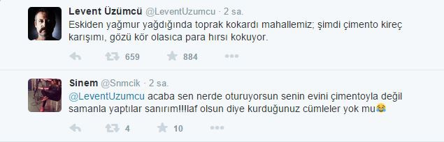 Gezi olaylarında ortalığı karıştıran oyunculardan biri olan Levent Üzümcü'nün İstanbul'da şiddetli yağış sonrası attığı twit sosyal medyada alay konusu oldu.