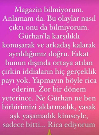 Oyuncu Merve Dizdar, 2018 yılında evlendiği meslektaşı Gürhan Altundaşar ile boşanma kararını aldıklarını Instagram hesabından yaptığı açıklama ile doğruladı.