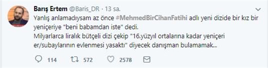 Aylardır beklenen Mehmed: Bir Cihan Fatihi dizisi dün akşam ilk bölümüyle ekrana geldi. Twitter'ı sallayan ilk bölümde binlerce kullanıcı dizide kullanılan kıyafetleri yerden yere vurdu. Dizide Fatih Sultan Mehmet'i canlandıran oyuncuya "Tanrı sizi korusun" ifadelerinin kullanılması, "Peygamber övgüsü almış bir komutana bu nasıl hitap?" yorumlarına neden oldu.