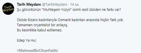 Öte yandan kadın oyuncuların dekolteli kıyafetleri Twitter'ı salladı. Osmanlı Devleti gibi şanlı bir milletin kadınlarını sürekli dekolteli kıyafetler ile ekrana getirilen diziye kullanıcı tepkileri şöyle: