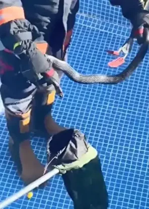 Bölgeye gelen itfaiye ekipleri gerekli teçhizatla havuza indi. Havuzda itfaiye erleri tarafından yakalanan yılan torbaya alındı.