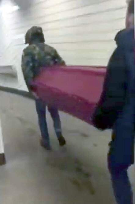 İki adam Novokosino’daki istasyonda metroya binerken görüntülendiler. Ancak yanlarında bir de tabut bulunuyordu.