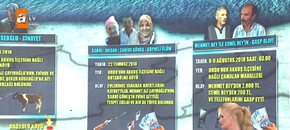 Ordu Akkuş ilçesi Çamalan Mahallesi’nde gasp edilen iki kişi, büyük bir cinayet ağını ortaya çıkardı. Şeker Köseoğlu’nun evinden çalınan tüfek ve hayvanları Mehmet Ali Çayıroğlu'nun evinde bulundu. Hayvan hırsızlığından sabıkası bulunan Çayıroğlu'nun cinayet zanlısı olduğu evinde yapılan aramada ortaya çıktı.