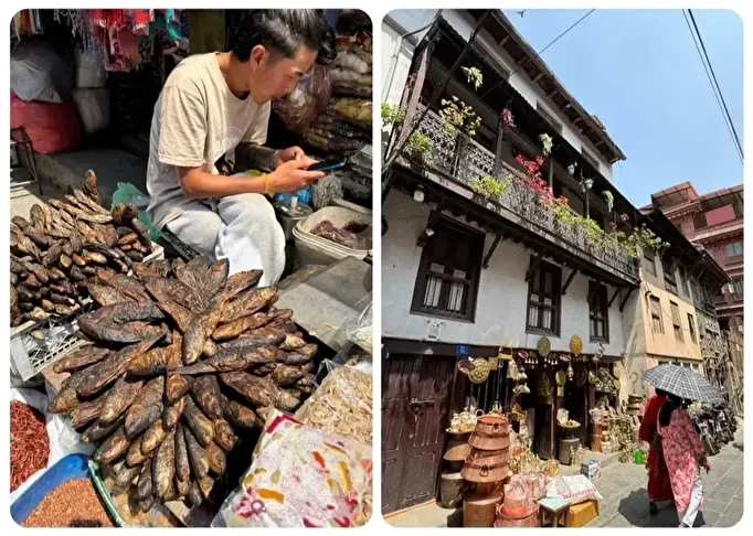 Bir saate yakın müzeyi gezip eserleri inceledikten sonra, müzenin çevresinde biraz yürümek istedim, başka bir dünya, başka bir Nepal gördüm. Dar sokaklarda küçücük dükkanlar vardı. Bakırcılar sokak boyunca çekiç darbeleriyle levhaları dövüyor. Parlak ibrikler, bakır kaplar üst üste dizilmiş. Bir kapının ardında ahşap ustası talaşların içinde bir pencere kafesi oyuyordu. Katmandu Vadisi’nde yaşayan Newar halkının geliştirdiği Newar mimarisinin ince ahşap işçiliğinin yansımaları imiş gördüğümüz; zanaatkarlar müzede gördüğümüz sanat eserlerine benzer ahşaptan oyma taklitler yapıyorlardı. Biz de birkaç tane el işi, göz nuru ahşap oyma eser aldık.