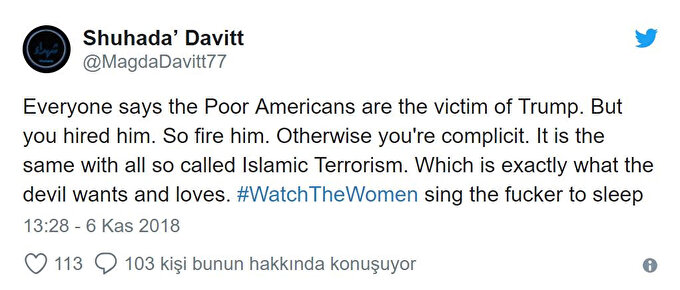 İslam'a geçince adını Shuhada (Şüheda) Davitt olarak değiştirdiğini ilan etmiş olan ünlü şarkıcı, Sinead O'Connor sosyal medya hesabından ABD Başkanı Donald Trump'ı hedef alarak açıklamalarda bulundu. Sinead O'Connor ABD halkına, Trump'ı kovun yoksa suç ortağı olursunuz" dedi.