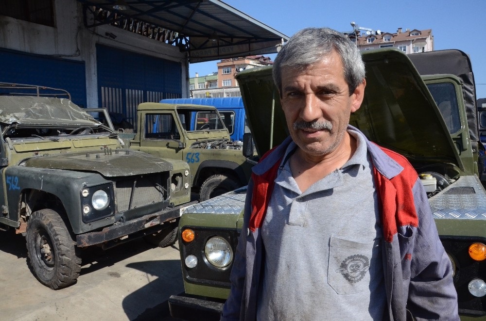 Ordu’da yaklaşık 40 yıldır tamircilikle uğraşan ve sanayi sitesinde dükkanı bulunan Turgut Karapestil, askeriyede kullanılan arazi tipi araçları ihale yoluyla satın alarak yeniliyor. Birçoğu tamamen kullanılmaz ve hurda olan araçları Makine Kimya Enstitüsünden temin ettiğini aktaran Karapestil, askeri birliği andıran deposunda araçlarını biriktiriyor.
